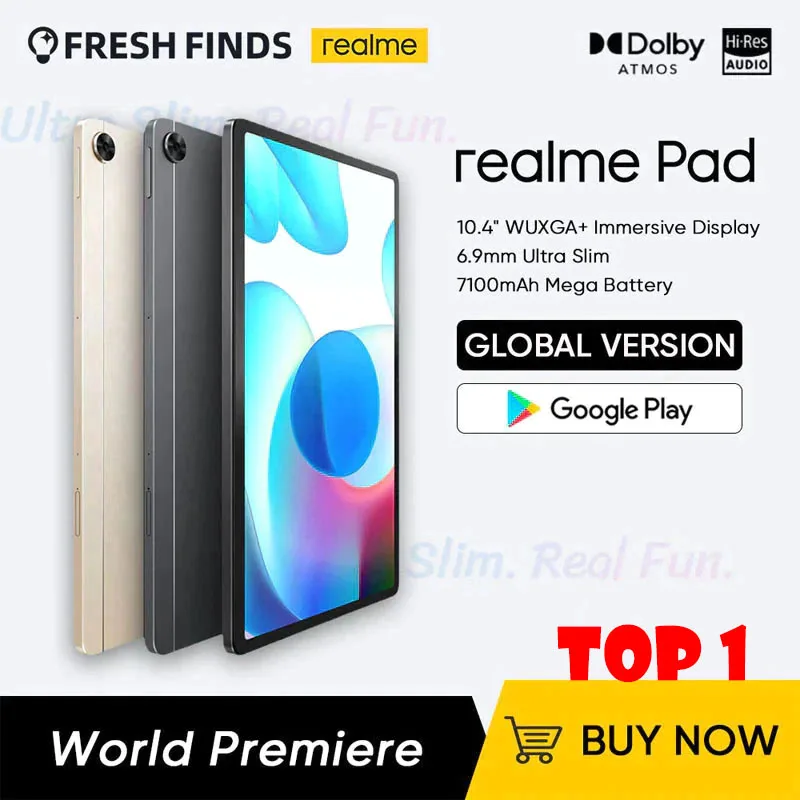 - Globale Version realme Pad realme Tablet 4GB 64GB Helio G80 10.4 ''WUXGA + Display 8MP Breite-winkel Kamera 7100mAh