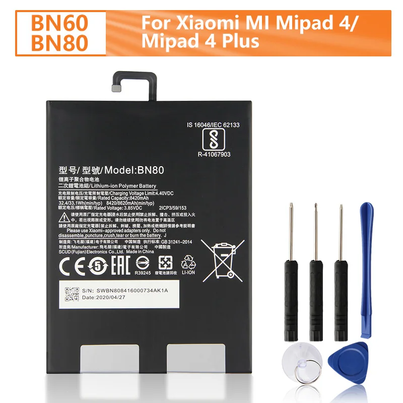 - Xiao mi Original BN60 BN80 Batterie Für Xiaomi mi pad 4 plus Echtem Ersatz Tablet Batterie Mit Freies Werkzeug